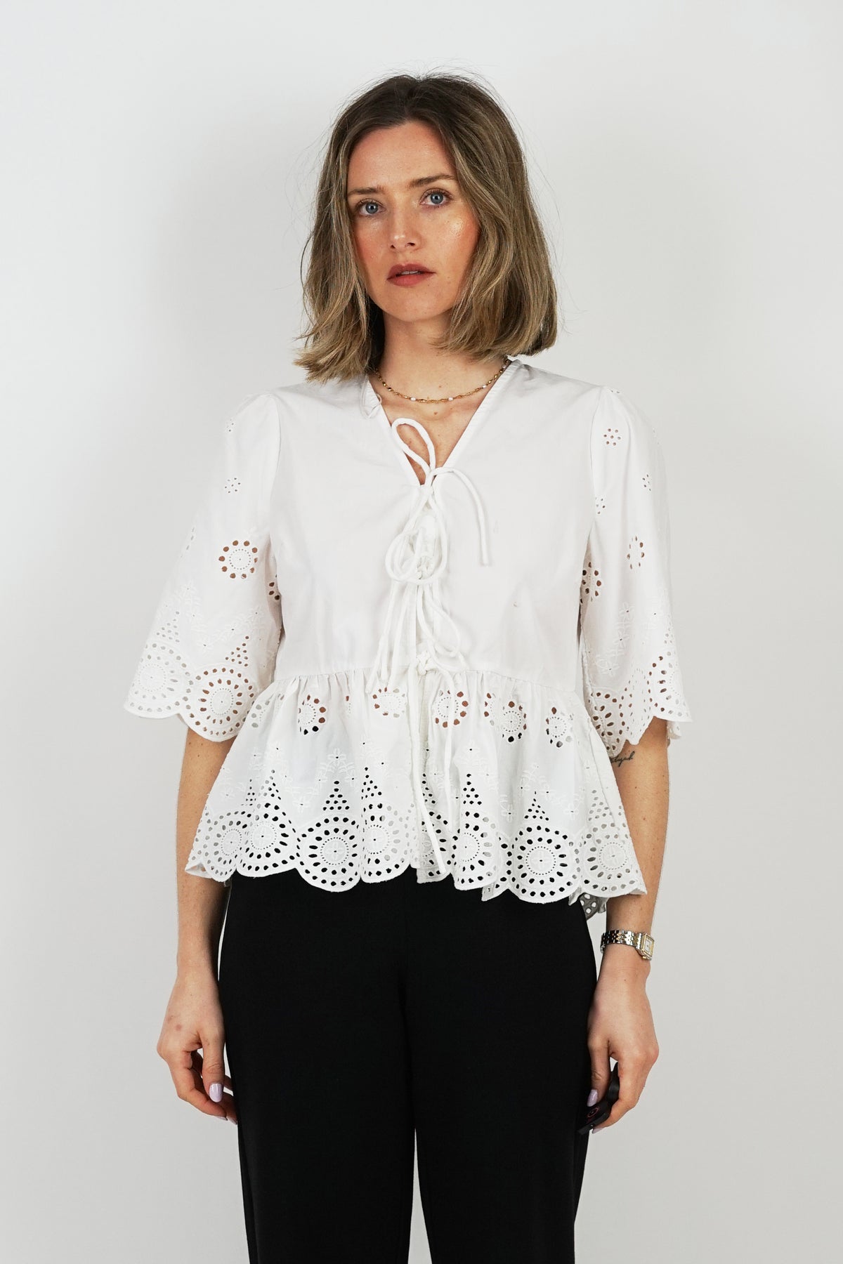 Cornelia Broiderie Tie Blouse